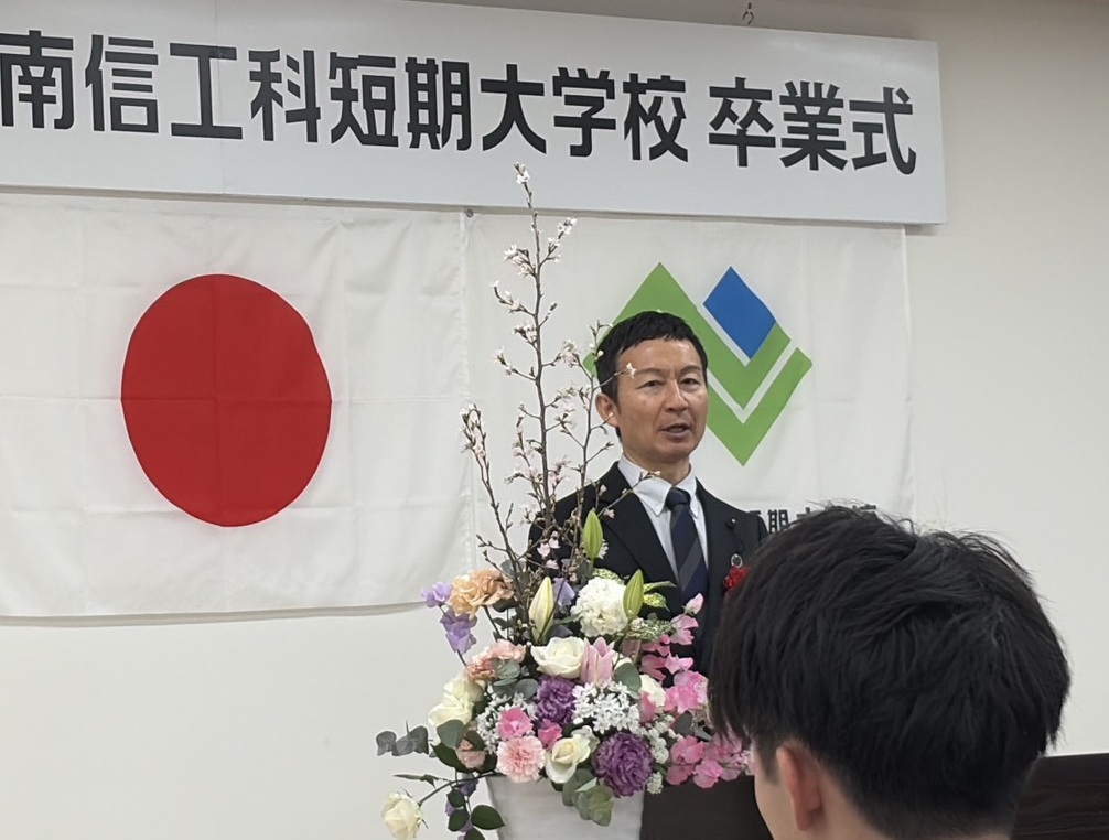 長野県南信工科短期大学校の卒業式があり、来賓出席。